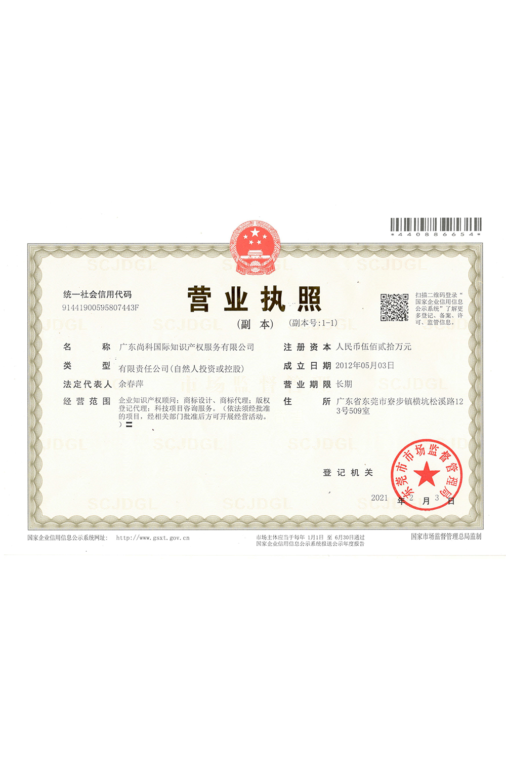 尚科公司新營(yíng)業(yè)執(zhí)照 |